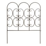 Add a stately look to your yard or garden with the Panacea Triple Arch Border Fence. Three graceful arches form the top of this robust fence, with curled scroll shapes underneath for added interest. These scrolls alternate in direction, for a versatile look on the item. Vertical rods divide each section, and a horizontal bar at the bottom completes the look. The two long legs insert into the soil, keeping the fence section stable. The metal construction is designed to withstand the elements, and the black finish furthers the classic feel. Protect your landscaping or walkway with this Triple Arch Border Fence.