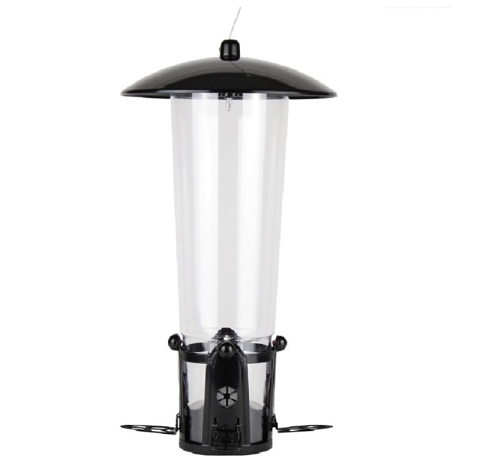 Highlights:Material: MetalDimensions: 8.6 in L x 8.6 in W x 18.5 in HFood Capacity: 3 lbFood Type: Black-Oil Sunflower Seed Sunflower Chips or Safflow