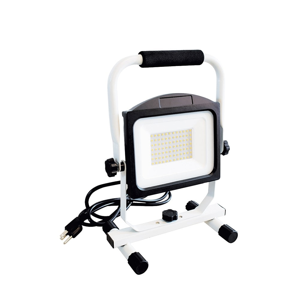 With compact design, USB port, and 6 ft power cord this light is easily portable from work site back to home and to anywhere that needs brilliant light