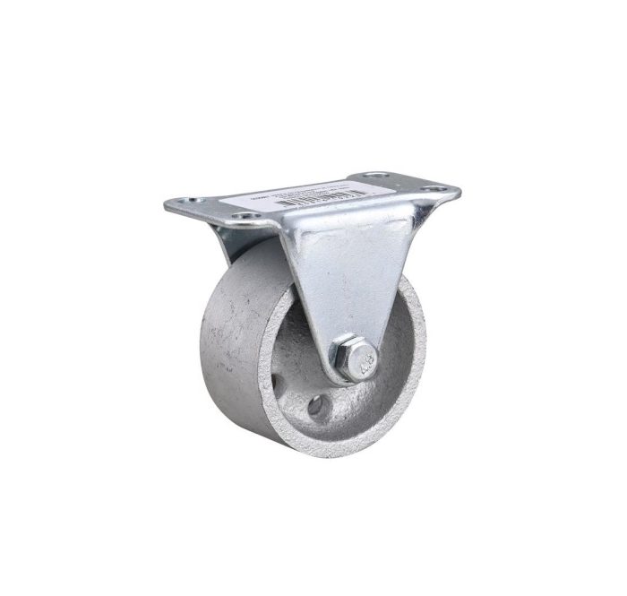 1-1/4 inch wide x 2 inch diameter cast iron sliver wheel with heavy duty rigid plate mount