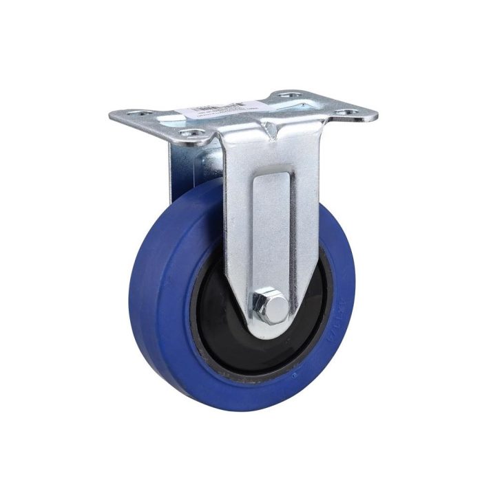 Extra-forgiving elastic blue casters maintain shape over obstacles and resist abrasion