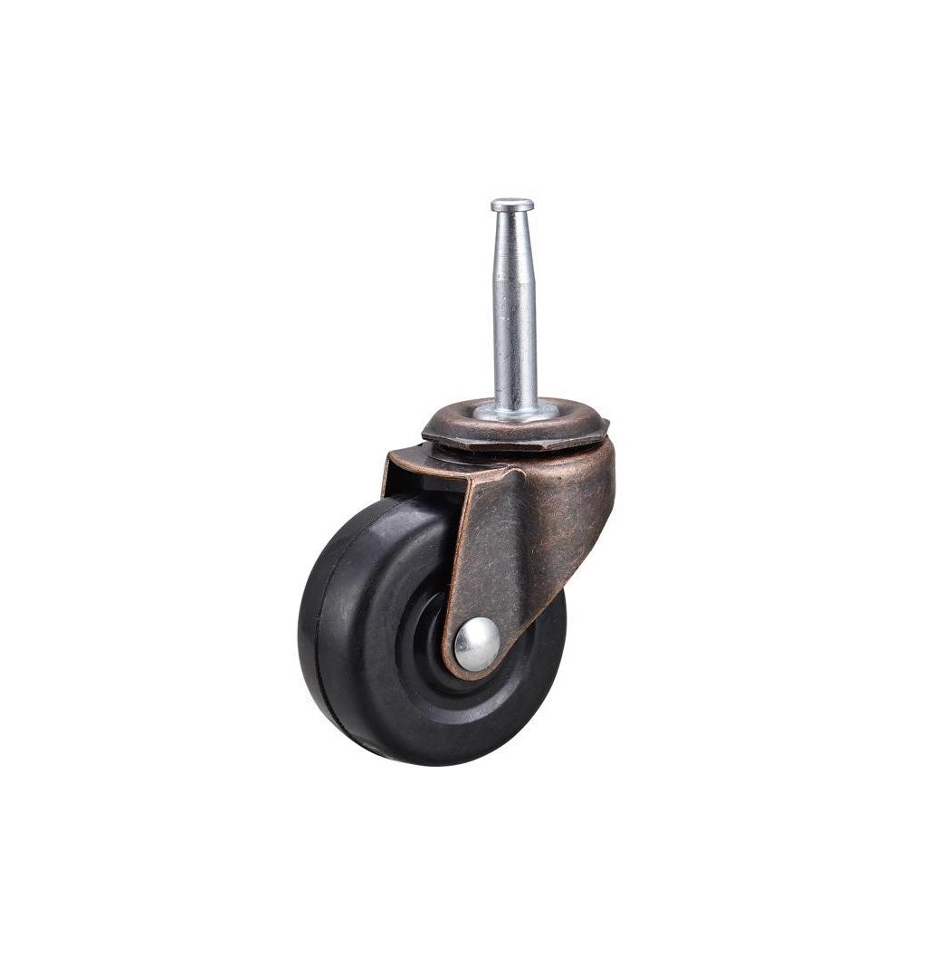Rubber wheel with double ball bearing swivel, friction stem mount and copper oxide finish