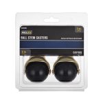 Soft black rubber wheel with double ball bearing swivel and protective hood with convenient stem mount and brass finish