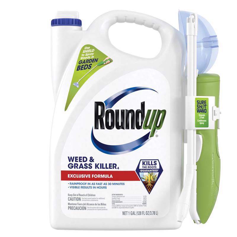 Use Roundup Weed & Grass Killer with Sure Shot Wand in and around flower beds and perennial landscape plants, around trees and shrubs, on patios, walkways, and driveways, gravel, or mulch beds, along fences and foundations, and edging around foundations and retaining walls