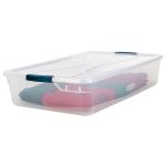 Highlights:Color : Blue/ClearMaterial : PlasticCapacity : 41 quart, dryHeight 6.125 inWidth : 17.75 inDepth : 29 inStackableLid IncludedMade of high q