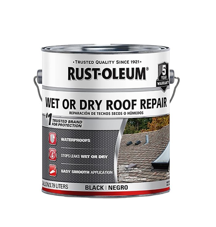 RUST-OLEUM wet or dry roof repair roof cement is a fibered, asphalt based cement that provides a strong and flexible seal and resists cracking