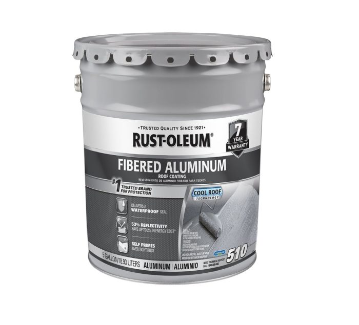 Rust-Oleum 510 Fibered Aluminum Roof Coating reflects heat, prevents corrosion and protects against mild acid and alkali fumes on a variety of substrates, including metal, transite, built-up roofing and modified bitumen