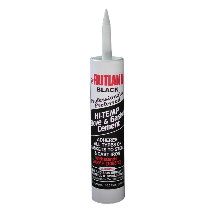 A high-temperature Black silicate ceramic-type cement used for making repairs on wood-burning stoves, and for sealing fiberglass gaskets into the woodstove door channels. Not used where there is joint movement. Withstands temperatures up to 2000°F (1090°C). Superior adhesive performance after heat cure