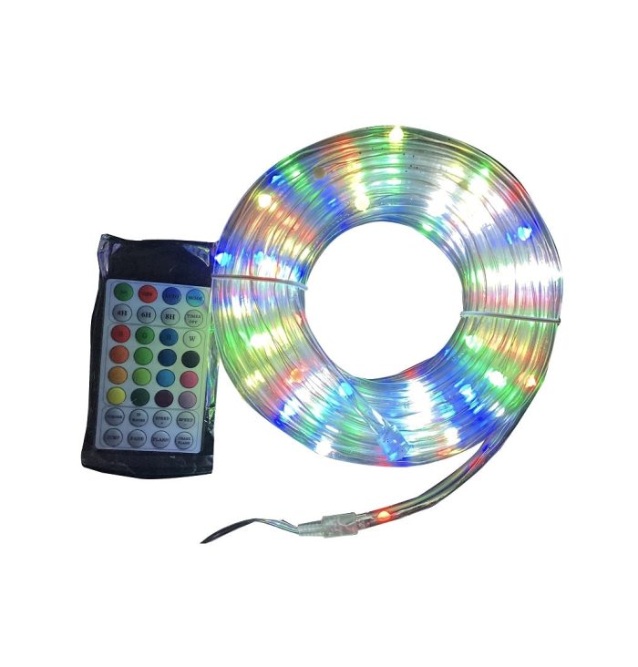 Highlights:Color: Multi-ColorIncludes: Remote ControlLength: 33 inchLight Color: Multi-ColorNumber of Lamps: 100Type: Micro Mini Rope32 Functions33 ft