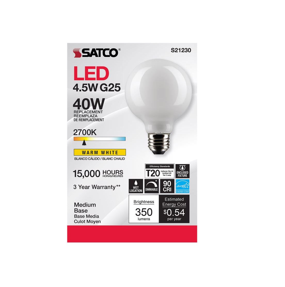 Satco S21230 G25 E26 Filament LED Bulb, Warm White