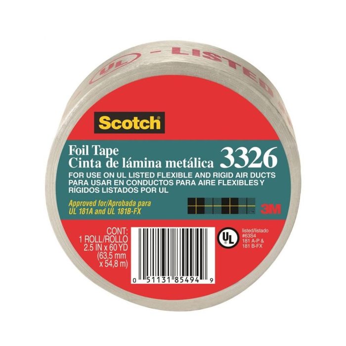 Scotch 3326-A Aluminum Foil Tape, Silver, 2-1/2 Inch X 60 Yd