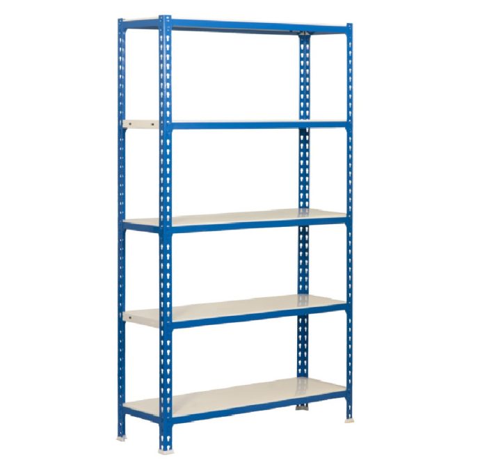 Highlights:Capacity per shelf: 400 lbsColor: Blue/WhiteDepth: 16 inchHeight: 71 inchMaterial: MetalMounting Type: Bolted SystemNumber of Shelves: 5Wei