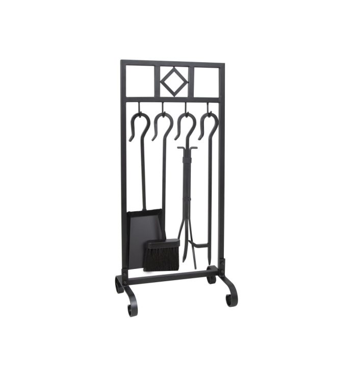 Highlights:Color : BlackMaterial : SteelNumber Of Pieces : 5Dimensions : 32-1/4 inch HFinish : Powder CoatedIncludes : (1) Brush (1) Poker (1) Shovel