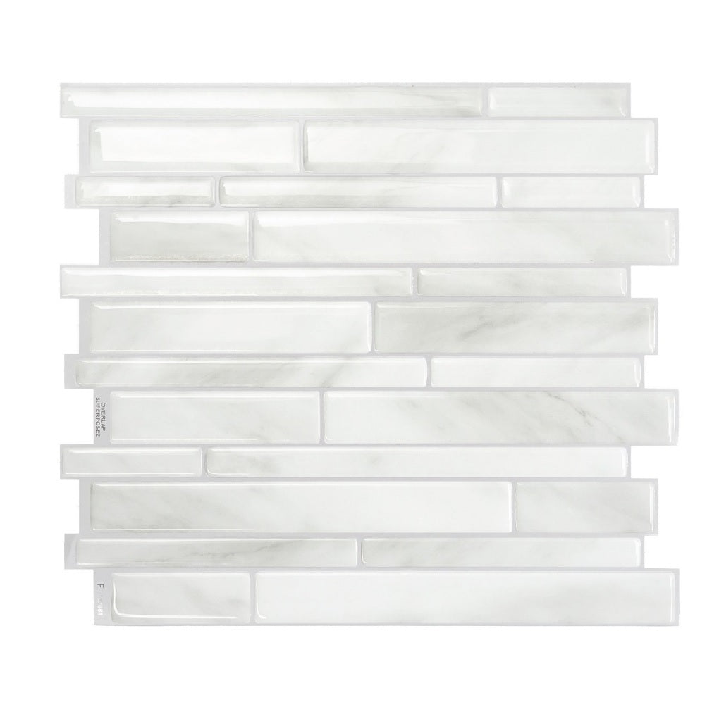 Highlights:Color: Gray/WhiteNumber in Package: 4Installation Pattern Type: Milano MassaInstallation Type: Peel and StickTile Length: 11.55 inchTile Wi