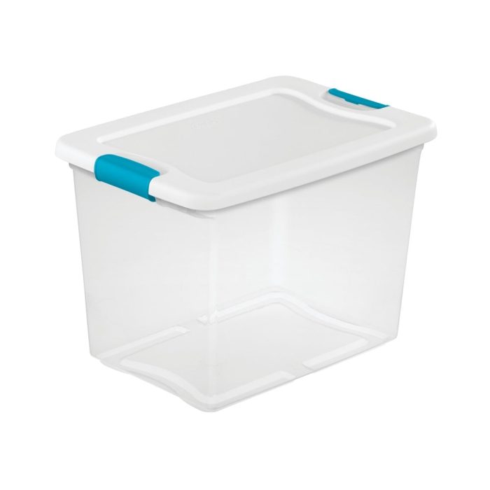 Sterilite 14958006 Latching Storage Box, 25 Quart, Clear/White