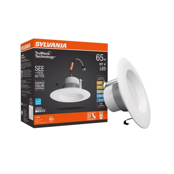 Integrated white trim, baffle or smooth reflector, socket, adapter, airtight ring (included)