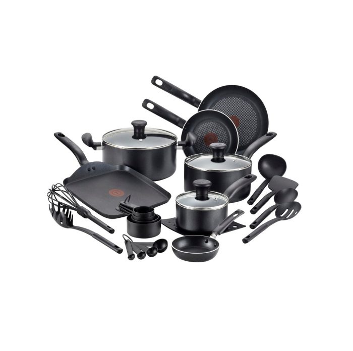 T-fal B208SI74 20-Piece Cookware Set, Aluminum, Black