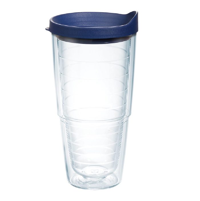 Highlights:Material: TritanColor: Blue/ClearCapacity: 24 ozBPA Free: YesReduces condensationEasy-to-clean and easy-close hammer lidUse caution with ho