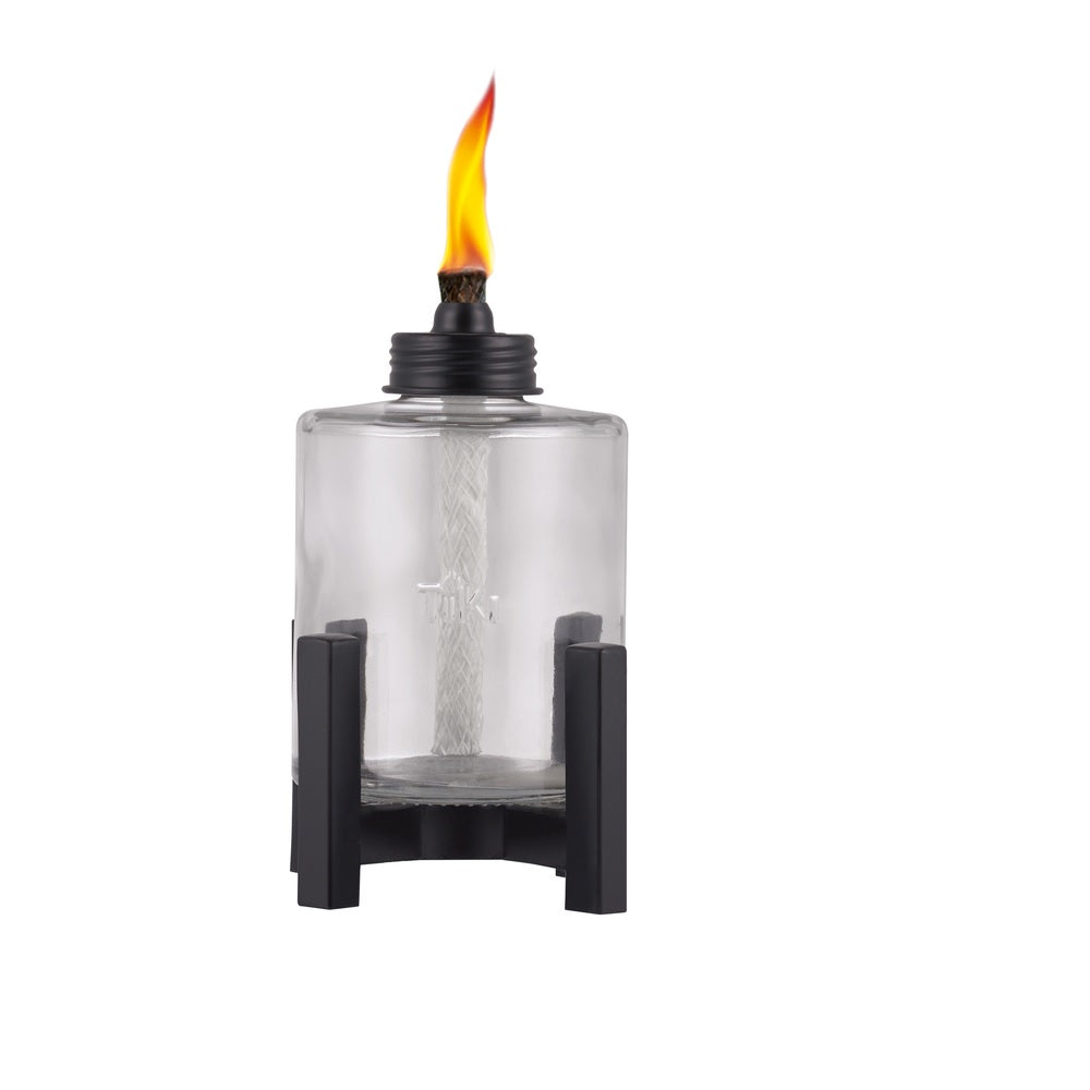 Its 6.5-inch clear glass fuel vessel with black decorative base coordinates with any decor