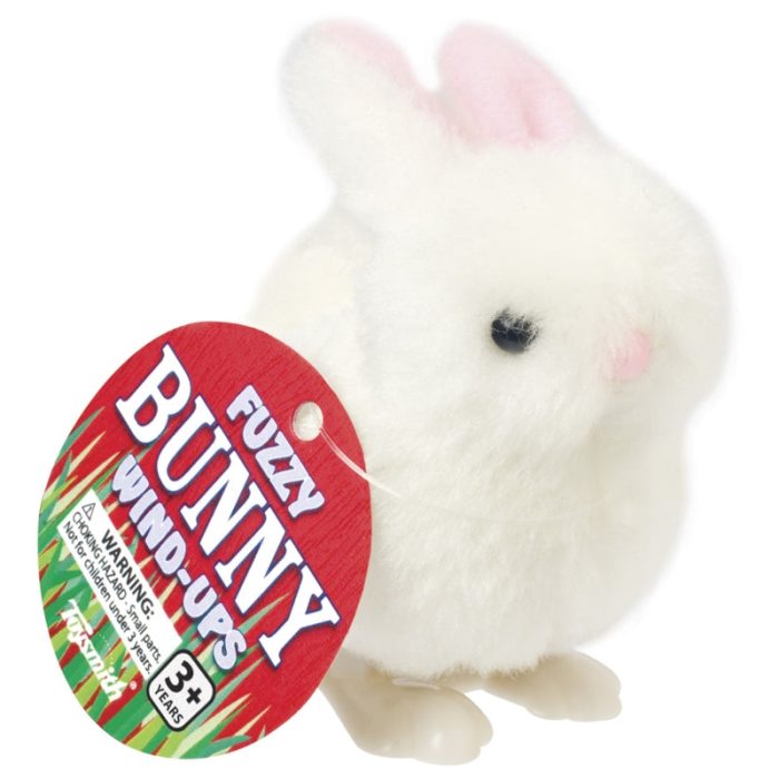 Toysmith 2030 Fuzzy Bunny Wind Up Rabbit, Cotton/Polyester, White/Pink