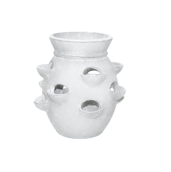 Highlights:Material: ClayColor: WhiteDrainage Holes: YesShape: RoundHeight: 18 inchWidth: 17 inchDepth: 17 inchBeautifully hand-crafted ceramic potter