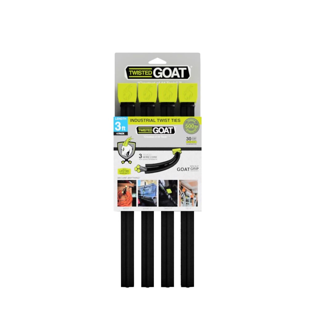 Twisted Goat TG-3FT-4PK Twist Ties, Nylon, Black