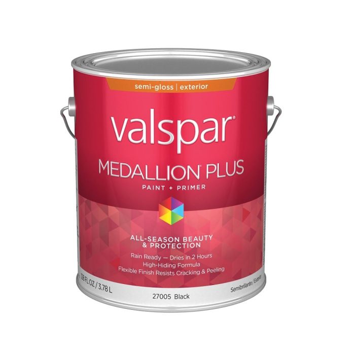 Highlights:Size: 1 GallonColor: BlackSheen: Semi-GlossRain Ready – dries in 2 hoursExcellent hide & coverageDurable, fade-resistant colorUltra-fle