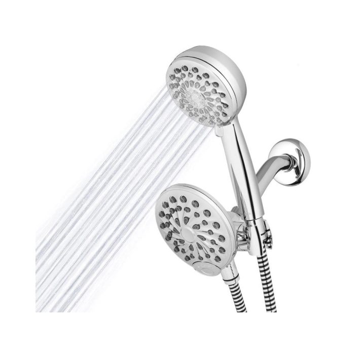 Hand held with flexible 60 inch hose convenient for bathing children or pets
