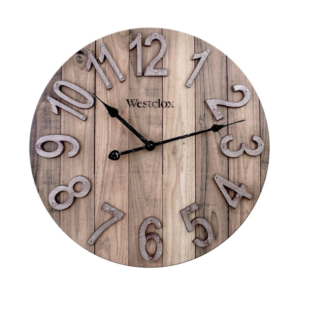 Highlights:Battery Type: AADepth: 1-1/2 inchDiameter: 15-1/2 inchDigital/ Analogue: AnalogueFrame Color: BrownFrame Material: WoodShape: Round