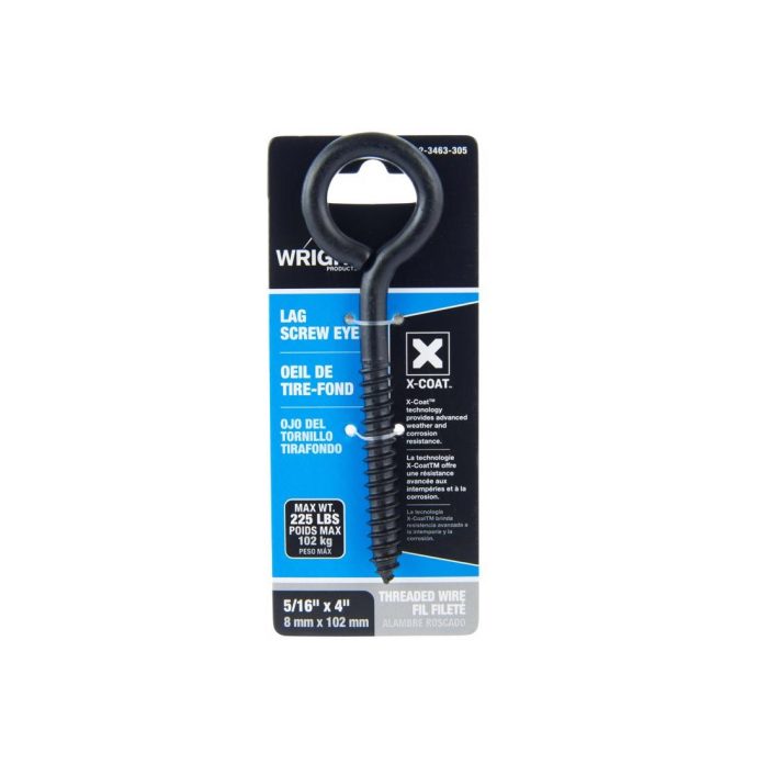 Wright 02-3463-305 Lag Screw Eye, Steel, Black