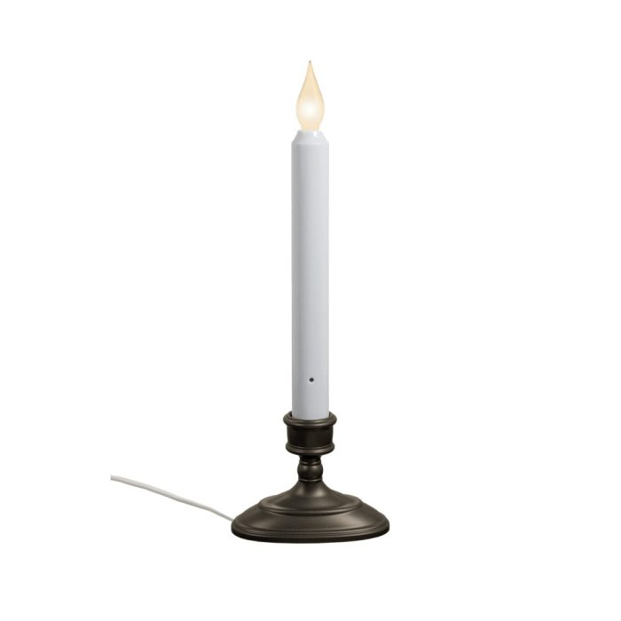 Highlights:Candle Color: Aged Bronze/WhiteCandle Material: PlasticCandle Size: 11 inch HBulb Type: LEDDimensions: 4-1/8 inch W x 2-3/8 inch D x 11-1/4