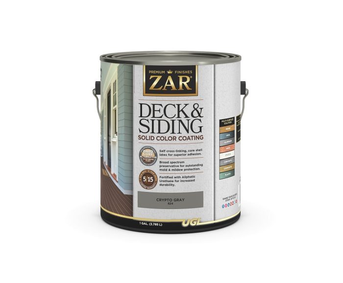Zar 82413 Deck and Siding Solid Color Coating, Crypto Grey, 1 Gallon